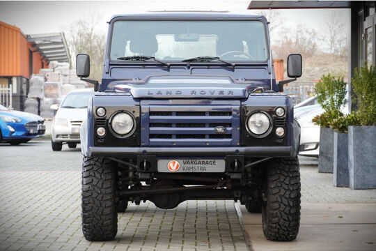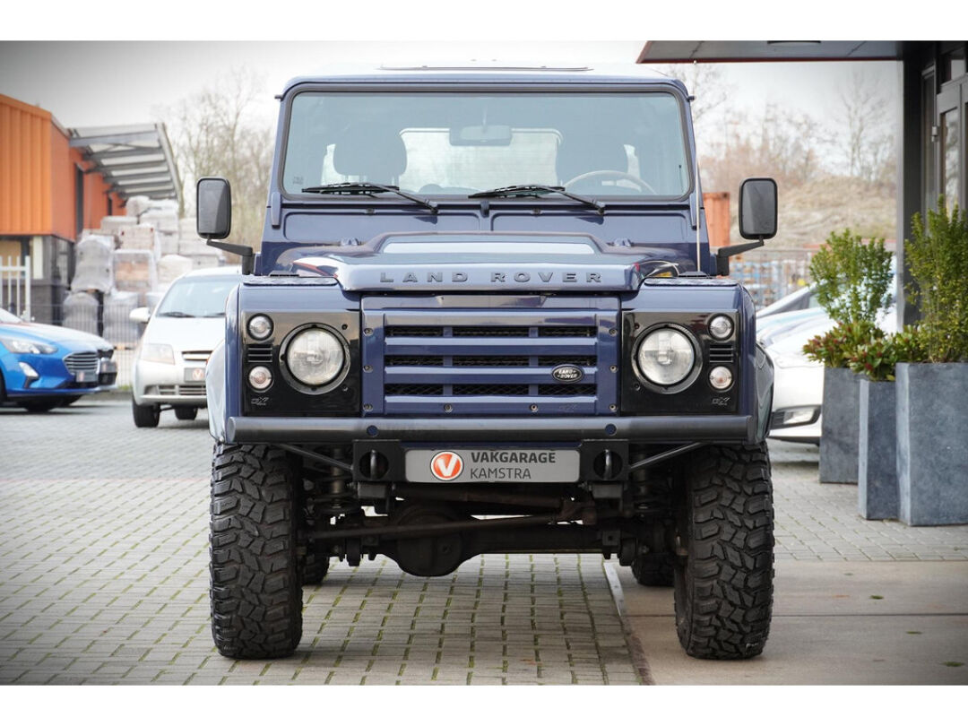 Een bijzonder nette en karaktervolle Land Rover Defender 2.4 TD uit 2011. Deze Defender onderscheidt zich direct door zijn unieke effen blauwe lak, een kleur die je zelden tegenkomt op dit model en die prachtig wordt aangevuld door de vele zwarte accenten rondom. De auto is voorzien van hoogwaardige KBX-accessoires, waaronder onder andere de kenmerkende grille en vents, wat hem een krachtige en moderne uitstraling geeft.